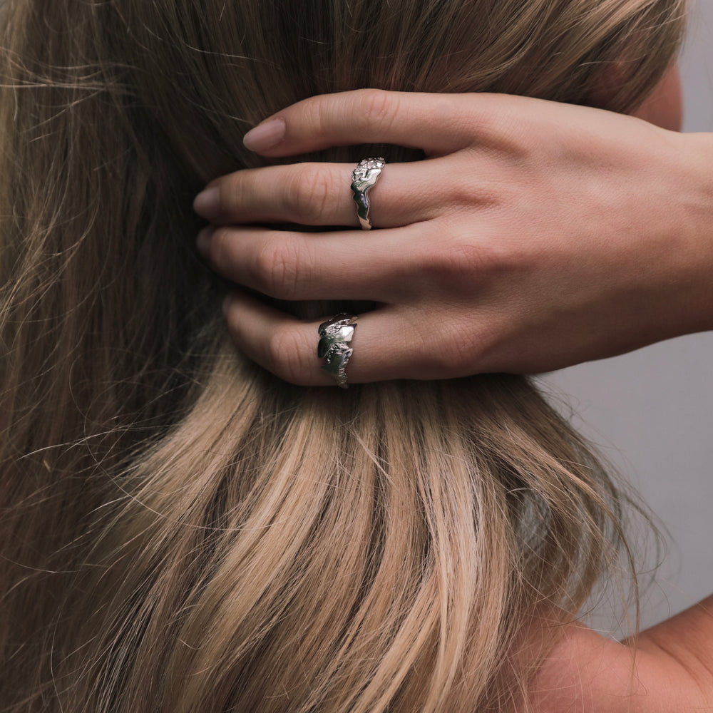 Sølv Josephine x Sistie Ring er designet med glatte og rå overflade, som skaber et detaljeret udtryk. Flotte øreringe som passer godt til både fest og hverdag. Josephine har designet denne kollektion med alle hendes facetter – perfekte som uperfekte. Hendes smykker er både glatte og rå i overfladen for at symboliserer hele Josephines rejse. Ikke kun de polerede, perfekte sider, som var dem hun før kun turde at vise, men også de upolerede, skæve, uperfekte sider.