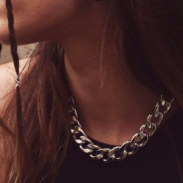 Halskæden er designet med et chunky panzer look.