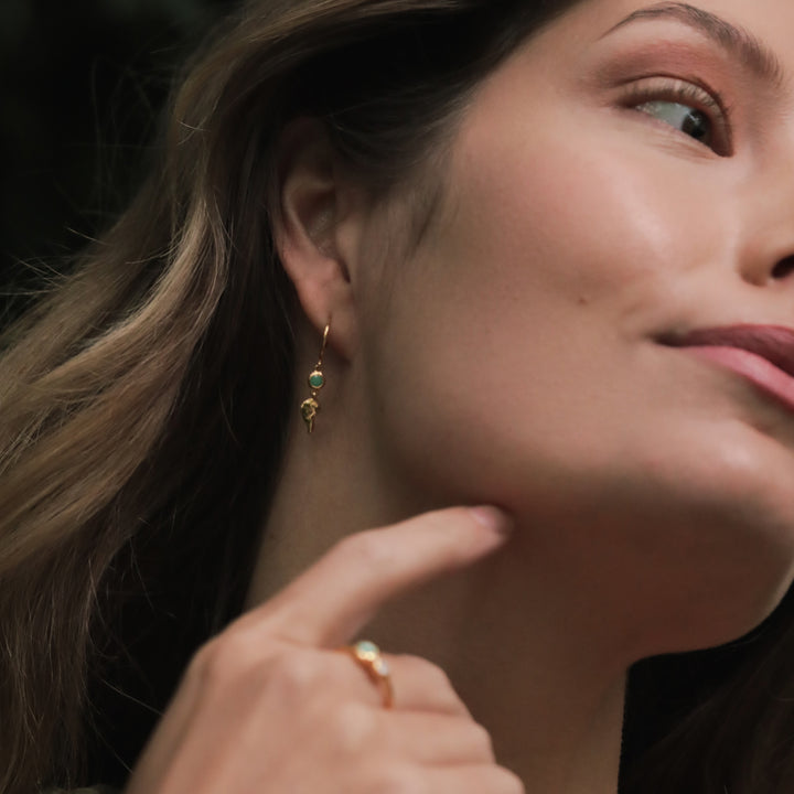Forgyldt Leonora Øreringe med Grøn Krysopras Krystal Sten