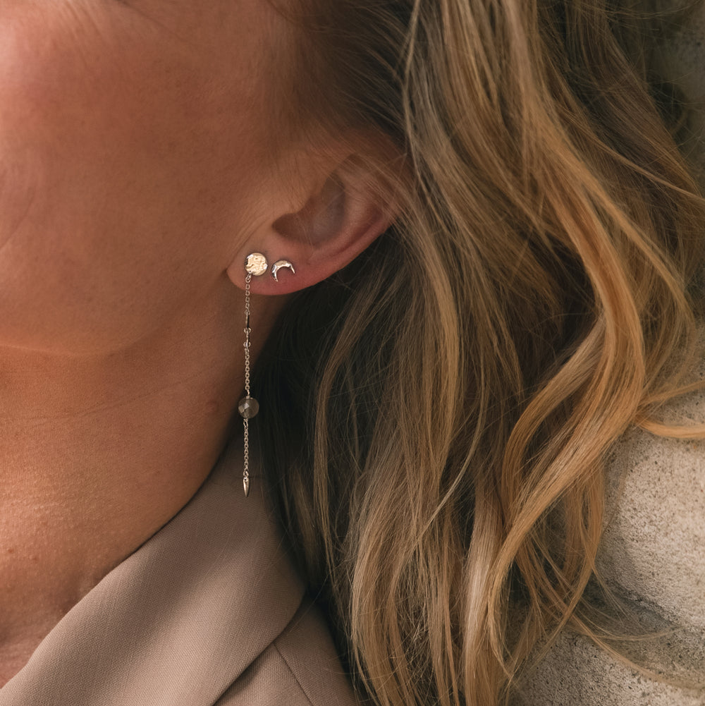Øreringen er designet med måner og grå månesten. Månestenen symbolisere ro, velære og kærlighed, og månen symboliserer forandring, kreativitet og kvindelig empowerment. ’’Vi er alle hele og konstant foranderlige i alle vores faser og livets cyklus. Præcis som månen viser os.’’ - Mie Moltke