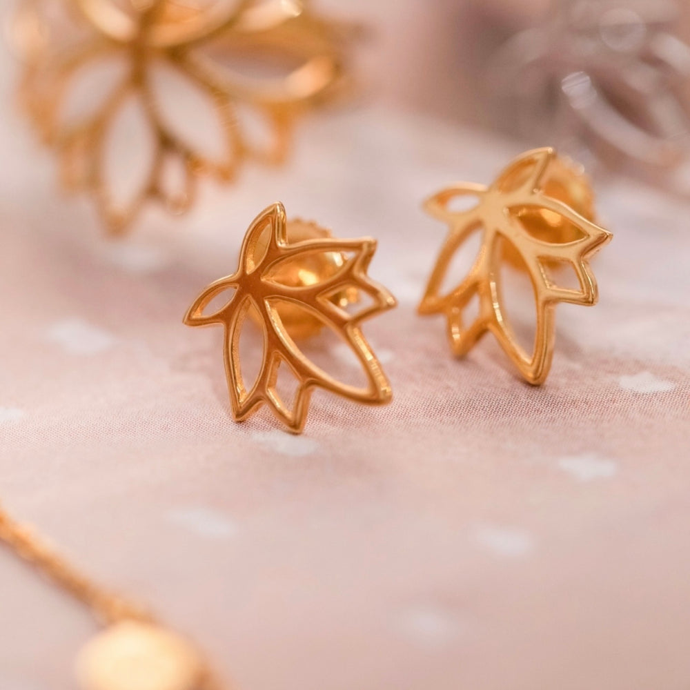 Ørestikkerne fra Mie Moltkes selvkærligheds-kollektion er fremstillet i 18kt guldbelagt sterling sølv og designet som en smuk lotus blomst.