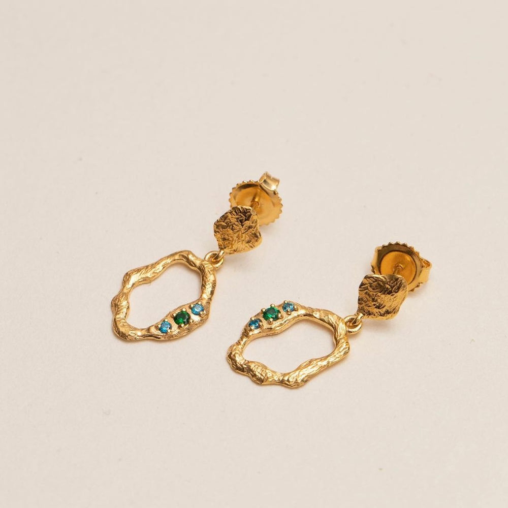 OCEAN øreringe i forgyldt sterlingsølv med blå og grønne zirkoner