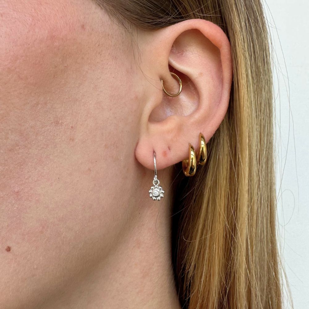 Øreringe med blomst og funklende zirkonsten, der tilføjer et sofistikeret touch til ethvert outfit. Ideelle til den stilbevidste kvinde, som elsker smykker med personlighed.