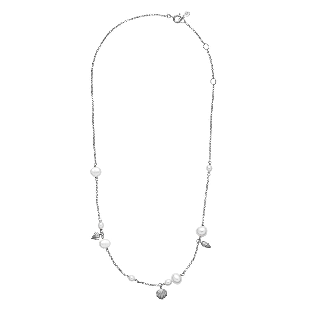 Halskæden kan bruges alene som et klassisk og feminint touch til outfittet men kan også bruges sammen med andre kæder for en mere personlig stil. Halskæden er fremstillet i mat sterling sølv og designet består af skiftevis muslingeskaller og hvide ferskvands perler