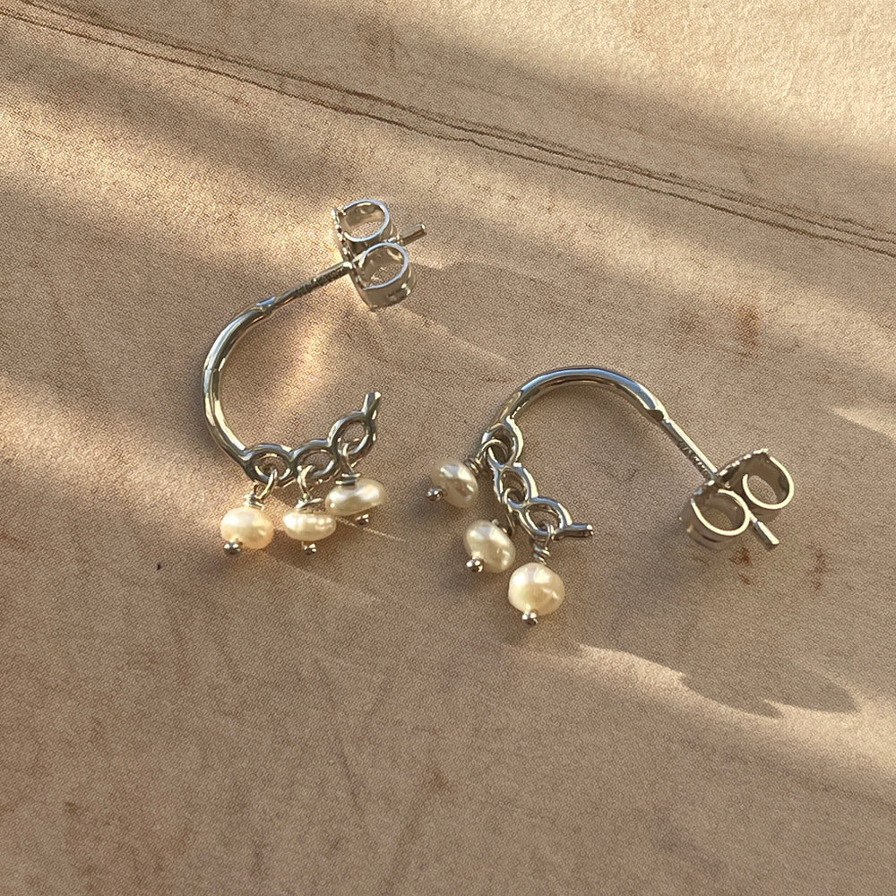 Smukke kreoler med 3 små ferskvandsperler der hænger forneden i små huller. Passer til både hverdag og fest, og kan flot mixes med andre øreringe, hvis du har flere huller i ørerne.