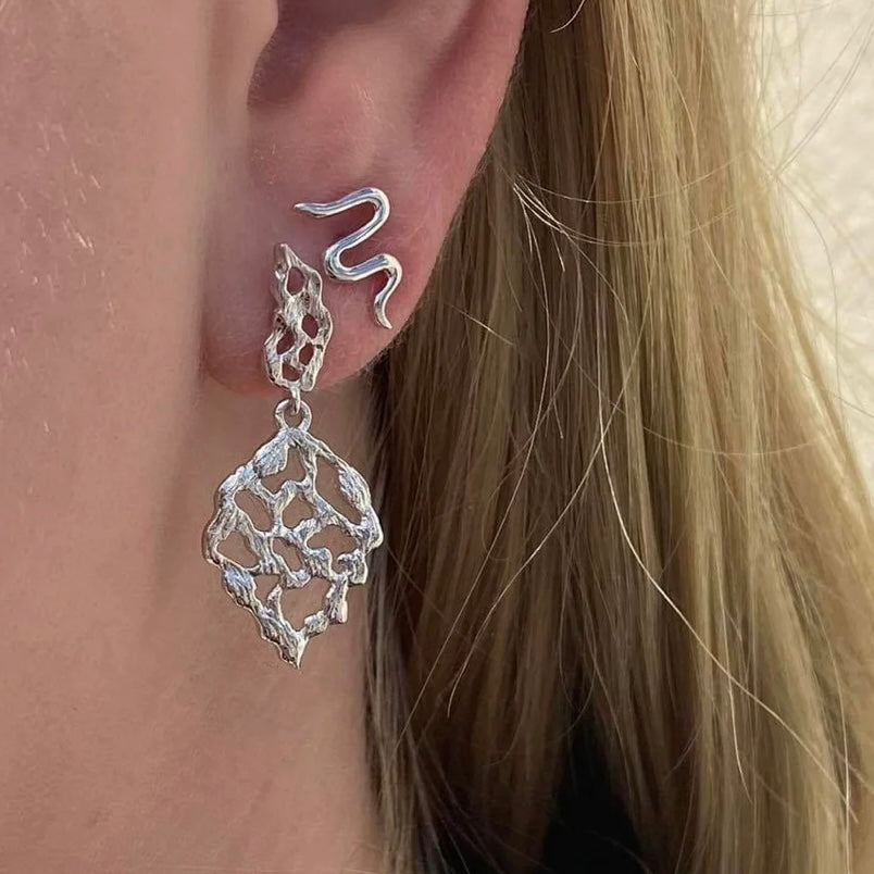 Skal du bruge et smukt og elegant udtryk til dit outfit? Disse øreringe er designet et organiske blad mønster og fremstillet i rhodiumbealgt sterlingsølv.