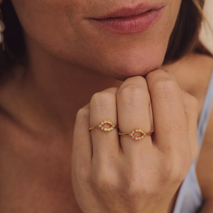 Forgyldt Leonora ring med Zirkoner i en oval og elegant form.