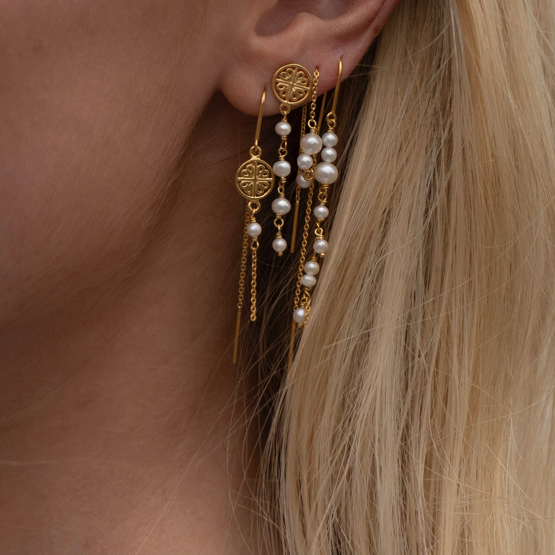 Sofia - Kæde ørering Forgyldt med ferskvandsperler