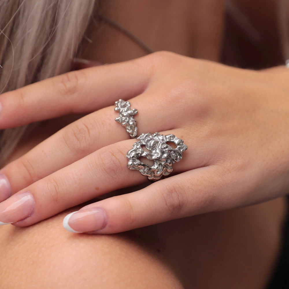 The Xenia x Sistie 2nd Ring is designed with a wide detailed wavy transition that adds an elegance to your look, whether it's everyday or party. Mix the ring with others and create your own look. See e.g. the selection of rings from Sistie 2nd.