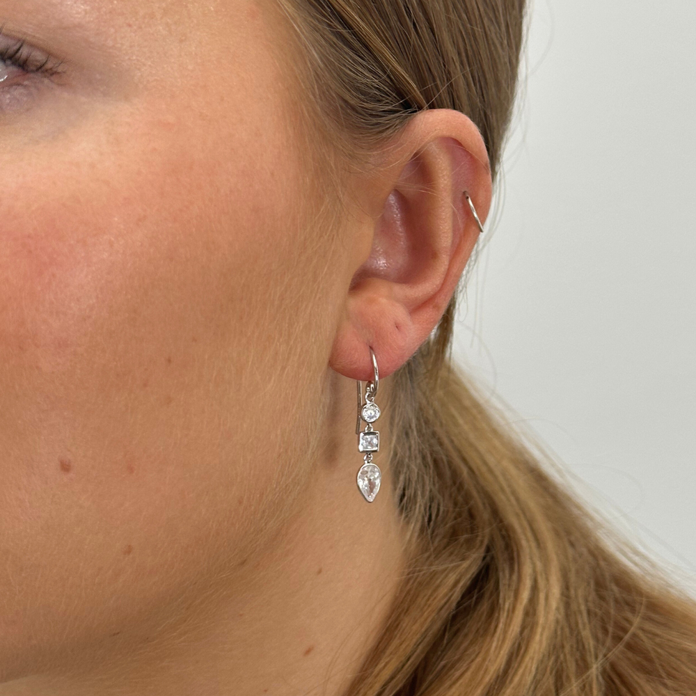 Sølv Aya Øreringe er designet med 3 elegante Zirkon vedhæng i forskellige former. Simpel og elegant Øreringe som passer godt til både fest og hverdag.
