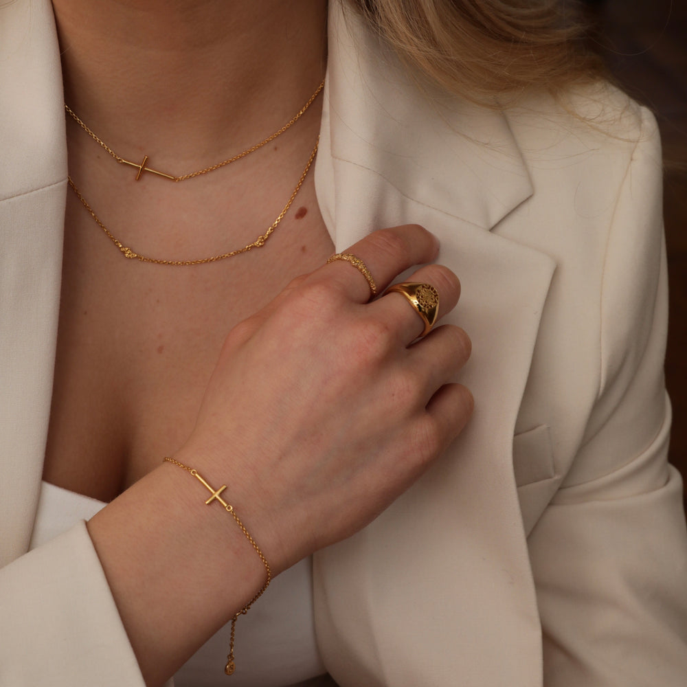 Super fin og nydelig halskæde med et simpelt kors. Halskæden er fremstillet i 18karat guldbelagt genbrugssølv.