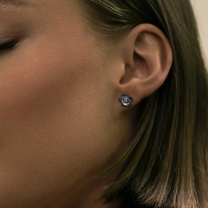 Sølv Rosa Ørestikkere i en blomsterform med zirkon sten i midten.