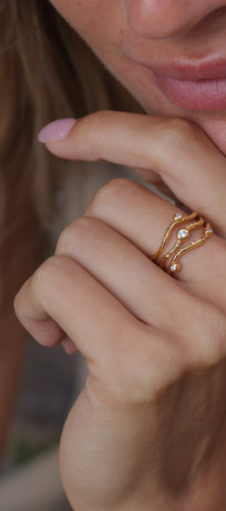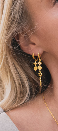 Sofie Schwartz x Izabel Camille kollektionen består af ørestikker, øreringe, kreoler, halskæder og ringe. Serien føres i både mat 18kt forgyldt og mat sølv. De er bevidst designet i mat look, fordi de vil oxidere over tid og blive mere blanke. Ligesom du ændrer dig, gør smykket også.